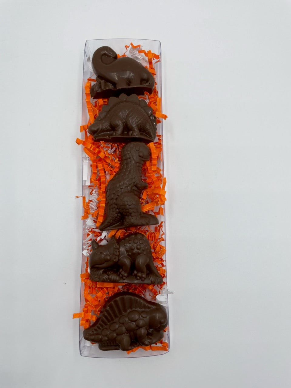 Neuchatel has some ferocious new friends! Our dinosaur packs include 5 assorted Swiss milk chocolate dinosaurs.